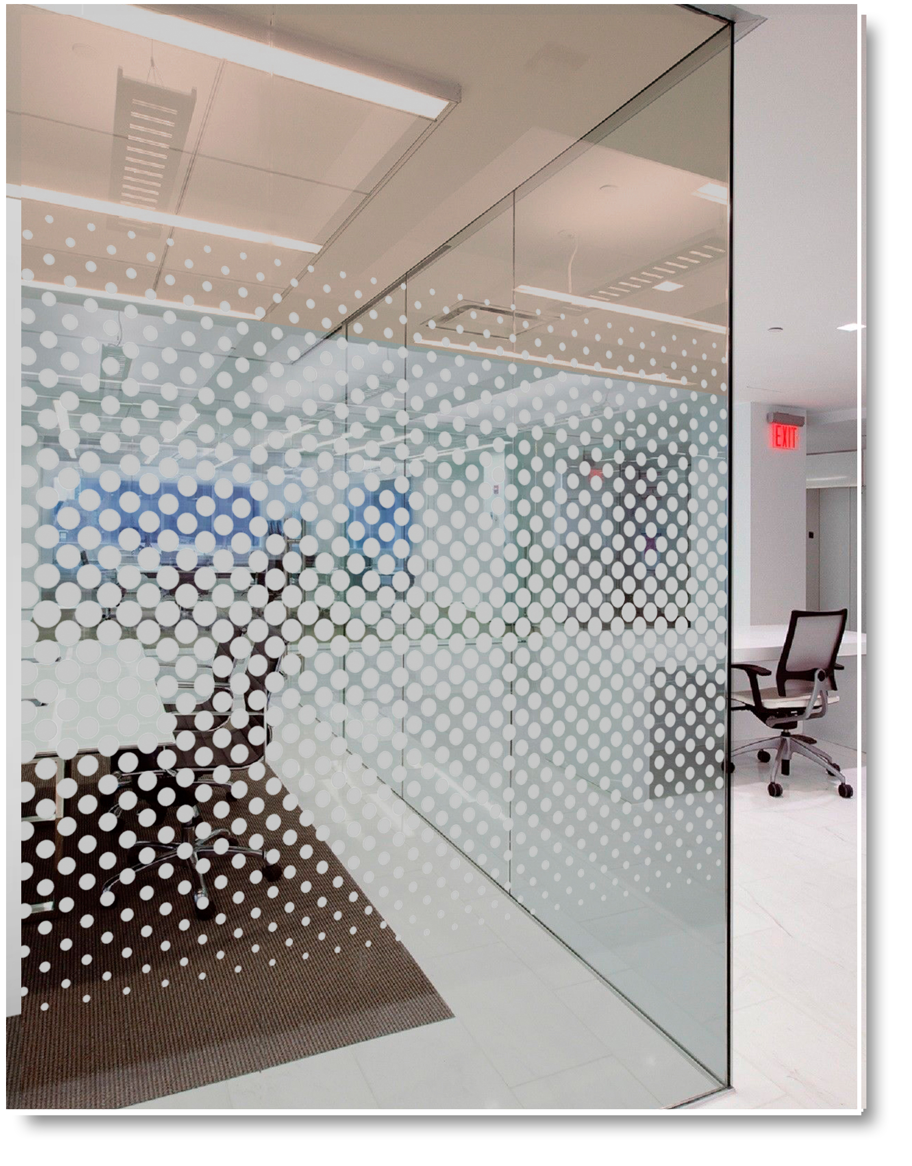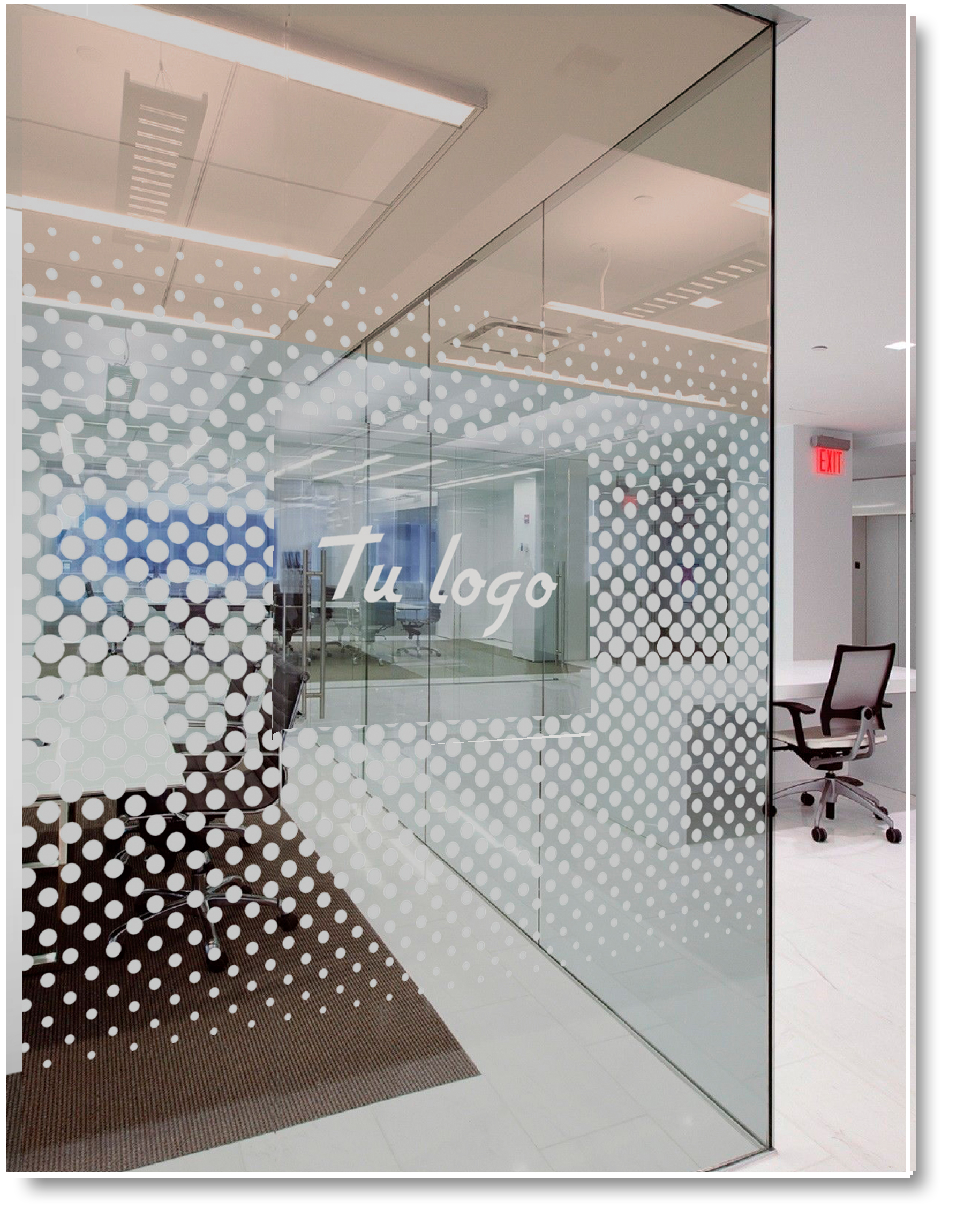Los vinilos decorativos para cristales oficina son realizados con vinilo adhesivo translúcido o esmerilado especial para cristales que DEJA PASAR LA LUZ y DA PRIVACIDAD.